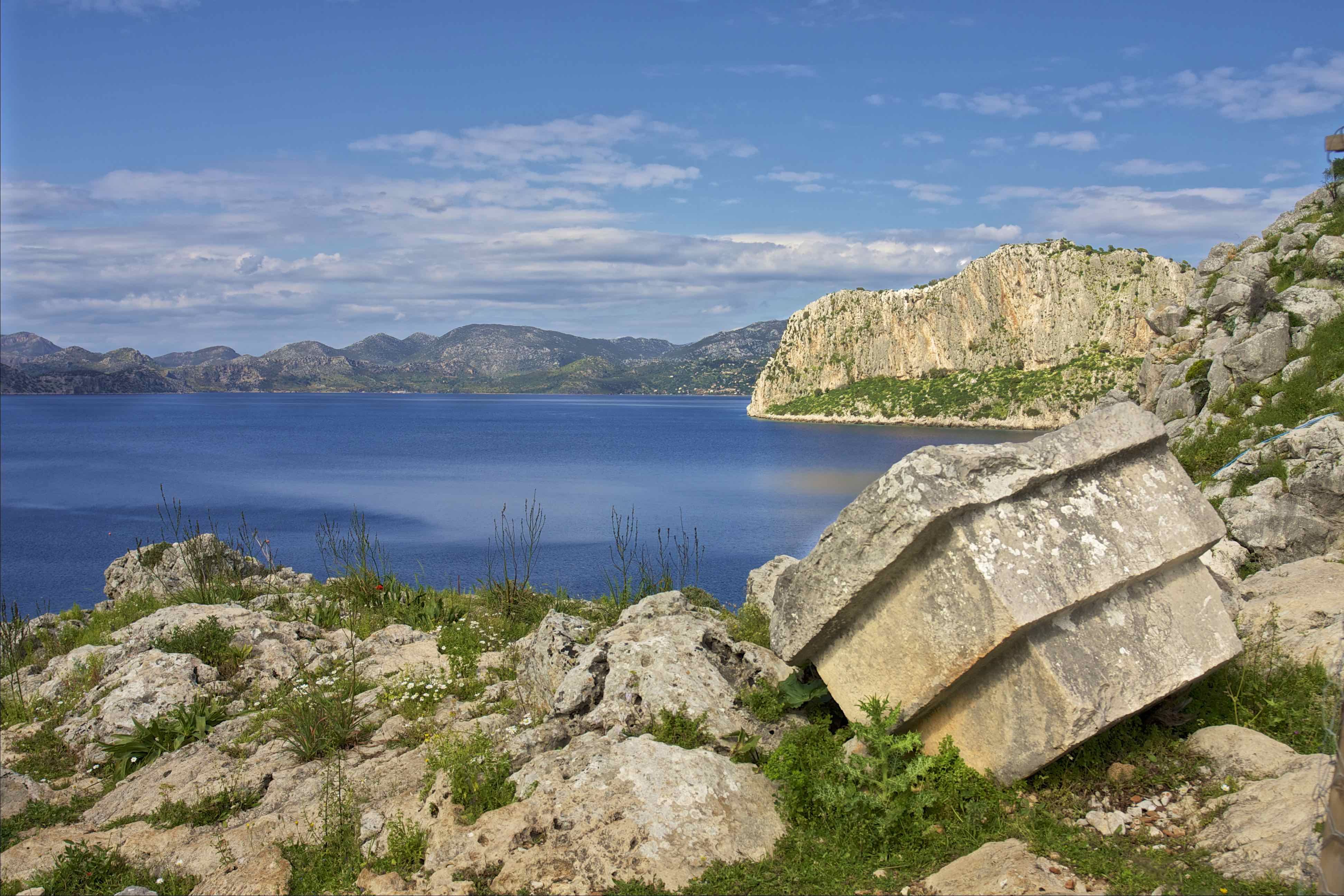The Bozburun peninsula is situated in the south west corner of Turkey, its wild and rugged beauty are a breath of fresh air after the mass tourism of Marmaris. The sparsely populated peninsula is home to less than twenty thousand inhabitants. The small town of Bozburun is the administrative centre of the region and famous for traditional boat building. Its sheltered bays and inlets are home to many craft during the winter months when they are hauled on land and propped up on wooden supports for repair and overhaul. In summer boats of all shapes and sizes can be seen at anchor or tied up at the harbor fronts all over the peninsula.